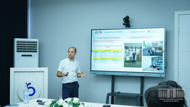 At first, Aziza Nuriddinova, the project coordinator working at the American Council, gave detailed information to the professors and teachers and doctoral students of the institute about the FEP (Faculty enrichment program), a 4-month training program in the USA.