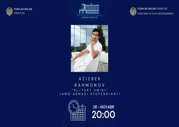 Azizbek Rakhmonov, who graduated from Fergana Polytechnic Institute, Faculty of Energy in the academic year 2017-2021, was recognized as the winner of the 2022 scholarship competition of the "El-Yurt Umidi" Foundation in the master’s program, and went to the University of Reading in Great Britain for the master's degree.